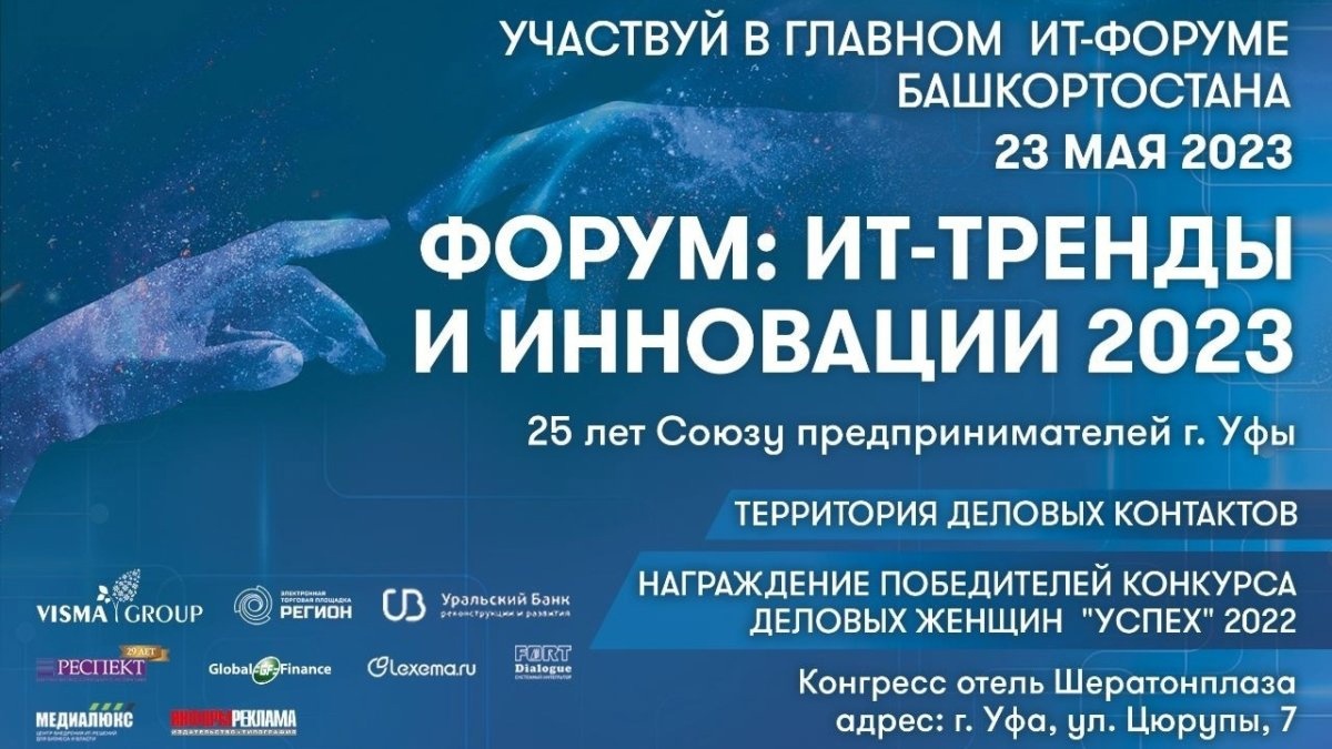 В рамках «Недели предпринимательства» 23 мая пройдёт Республиканский форум «ИТ-тренды и инновации 2023». Форум посвящён 25-летнему юбилею Союза предпринимателей г. Уфы.